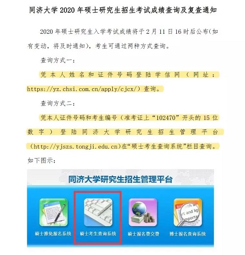 2020 年硕士研究生入学考试成绩将于 2 月 11 日 16 时后公布(如有变动,将及时通知)。
