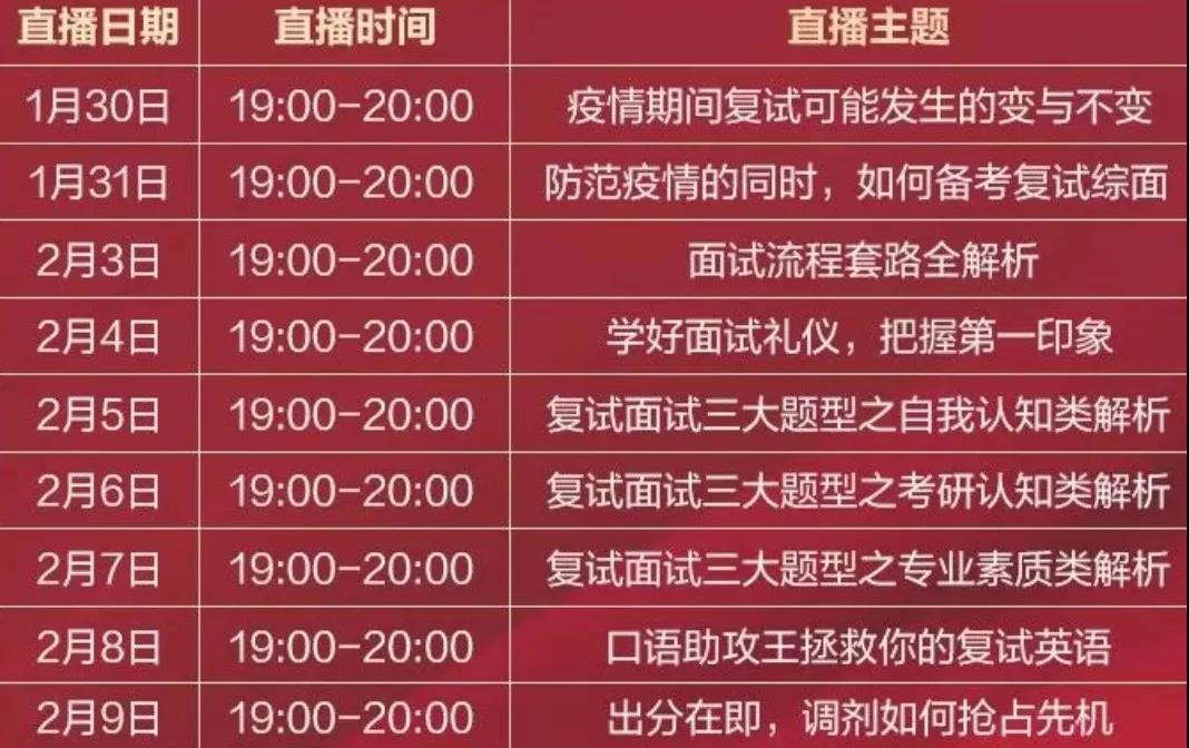 成绩查询时间临近,也意味着20考研党离复试也近了一步。对于前两种情况的同学,请按照进入复试的情况准备,万一是个好结果呢。最后一种的同学,应当按照复试+再战的心态来准备,万一万一万一呢,对吧。其实,对于今年的复试,无论采取何种方式,延迟或提前到什么时间,考察的最核心的基本内容还是不会发生改变。认真准备,成功总会眷顾有准备的人。