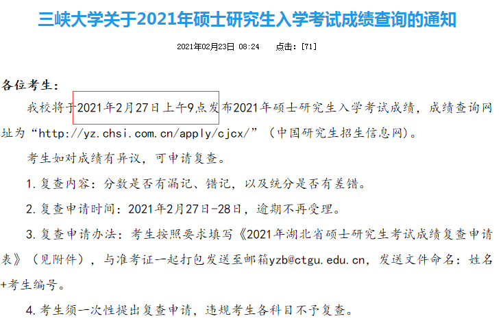三峡大学关于2021年硕士研究生入学考试成绩查询的通知