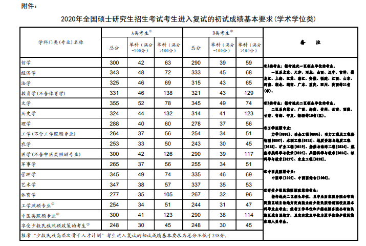 附件:2020年全国硕士研究生招生考试考生进入复试的初试成绩基本要求.pdf