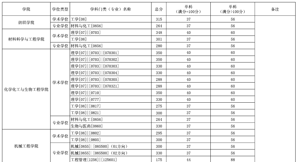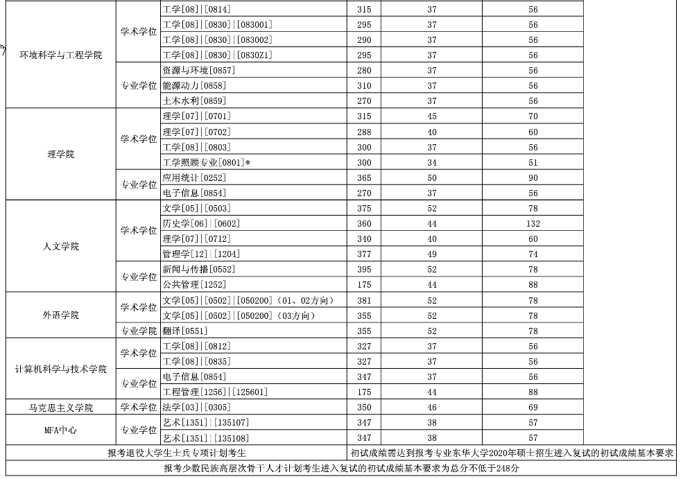 原标题:东华大学2020年硕士研究生招生考试进入复试的初试成绩基本要求