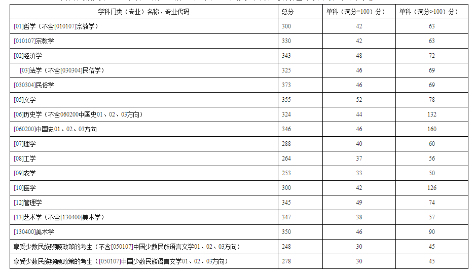 西南民族大学2020年硕士研究生招生考试考生进入复试的初试成绩基本要求(学术学位类)