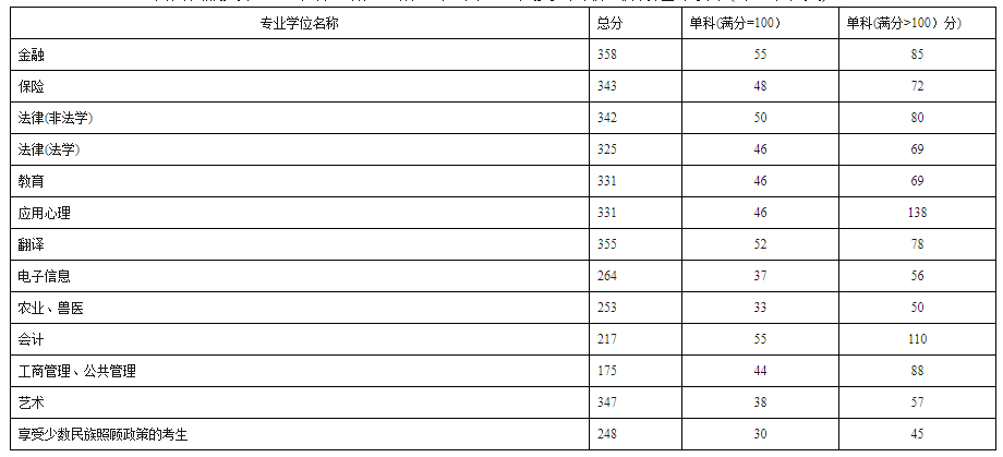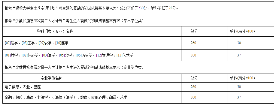 西南民族大学2020年硕士研究生招生考试考生进入复试的初试成绩基本要求(专业学位类)