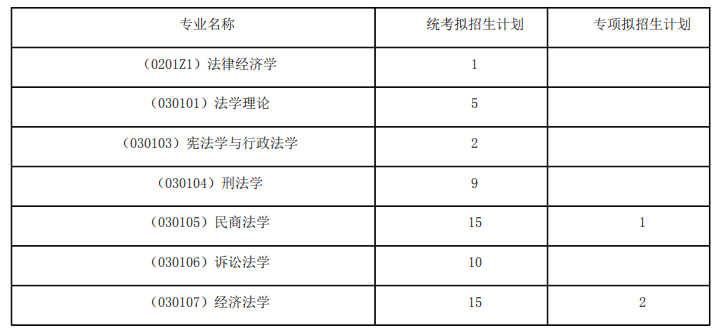 法学院 2019 年硕士研究生各专业本次复试拟招生计划数如下: