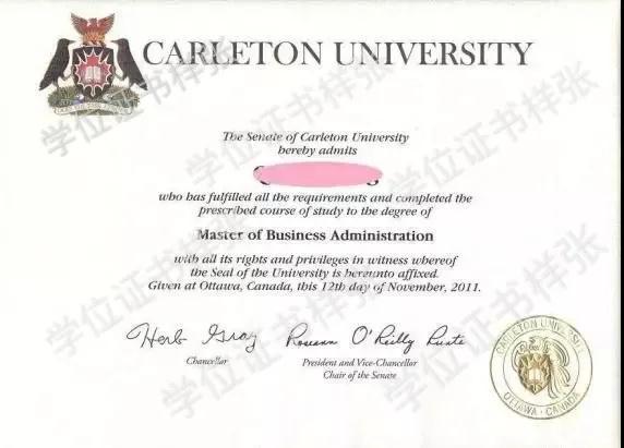 学位:加拿大卡尔顿大学颁发工商管理硕士学位(MBA)证书