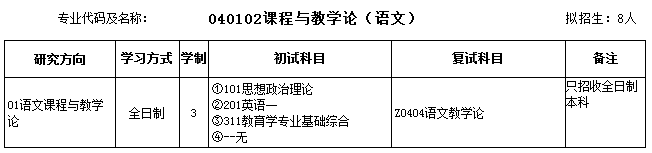 安徽师范大学2020年硕士研究生招生职业目录(课程与教学论——语文)