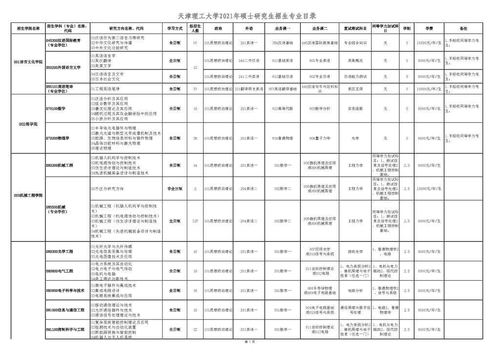 原标题:天津理工大学2021年硕士研究生招生专业目录