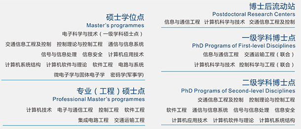 学院学历教育涵盖博士、硕士、重点本科、留学生(博、硕、本)等多个层次。拥有4个一级学科博士点、9个二级学科博士点、13个硕士学位点,以及6个工程硕士点和3个博士后流动站,还拥有国家重点学科、省级重点学科。2016年5月,计算机科学学科进入ESI全球排名前1%。