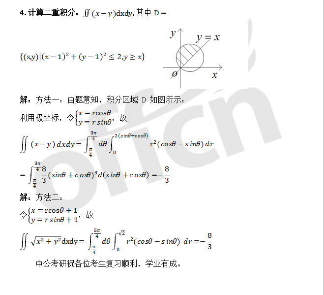 您所在的位置:四川中公考研 > 复习指导 > 浅谈极坐标在二重积分计算中的应用【考研数学】
