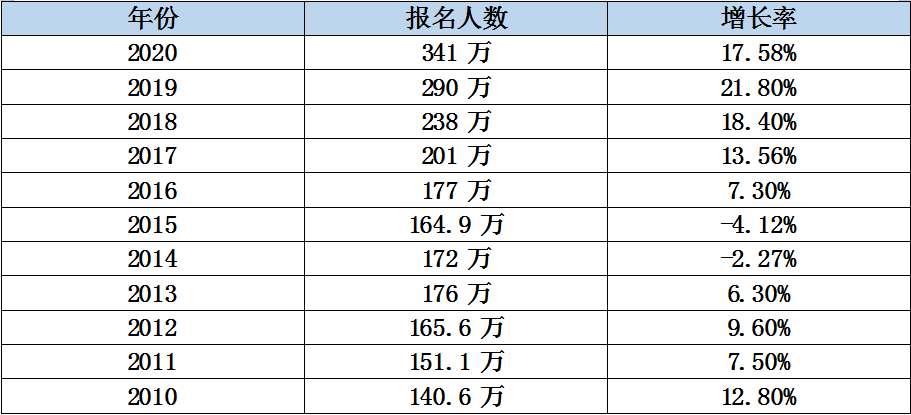 每年报考研究生的人数都有上升,今年是341万,同比去年上涨17%,按照这个趋势预计明年还会有所增长,我们在这里预祝各位考研学子考研加油!